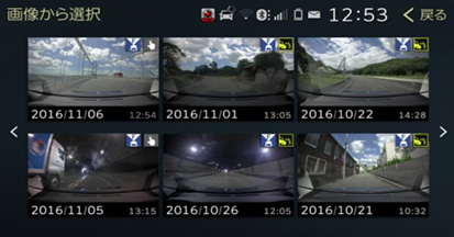 「もしもの時にすぐ見たい」「風景の撮影後にすぐ見たい」「後で思い出に浸りたい」、様々なニーズを3タイプの選択画面でサポート。AVNの大きな画面を活かしたインターフェース、直感操作で映像再生ができます。